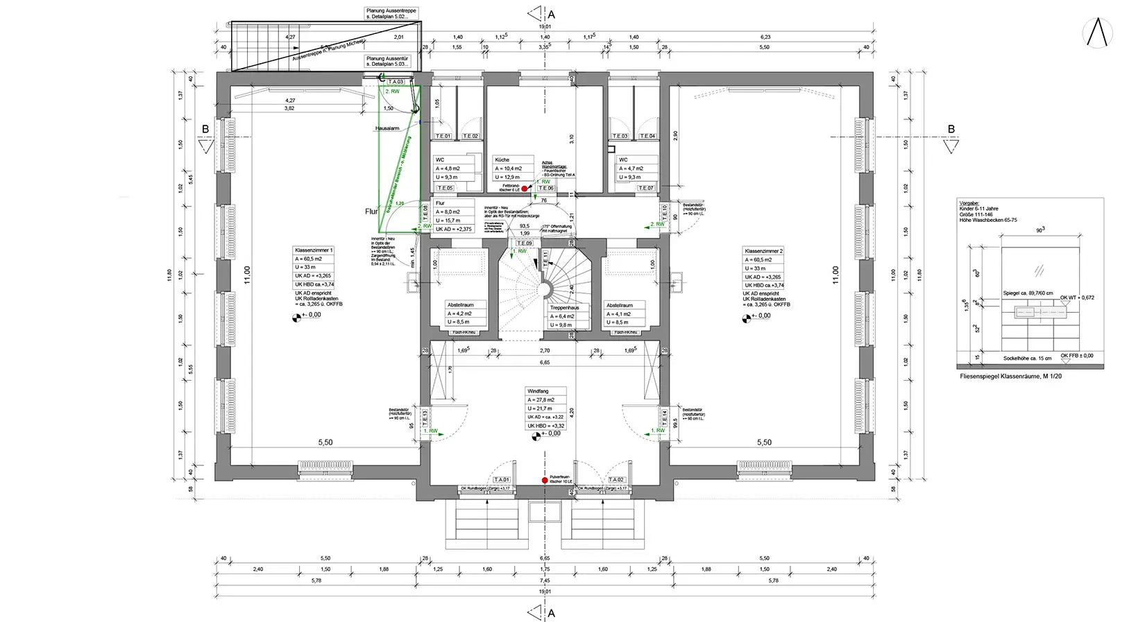 Im direkten Umfeld einer bestehenden Schule wurde ein denkmalgeschütztes Gebäude in einen